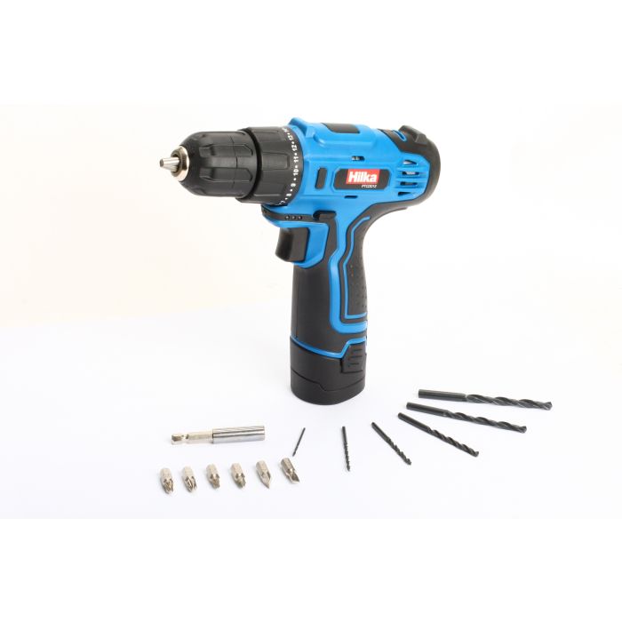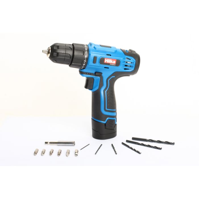 Cordless 12v drill driver with 17 torque + drill settings. 10mm keyless chuck with forward and reverse integrated into housing for easy use. Ergonomic soft grip handle with LED work light for illuminating the work area. Copper coiled motor for lasting performance. Supplied with 13 pce accessories. No-load speed: 0-750RPM. Battery 1.3Ah Li-ion with 3-5 hour charger.