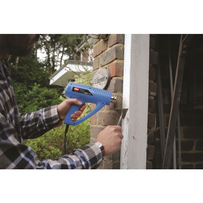 2000w Hot air gun with variable control of temperature and air flow. Thermal cut out for safety and a hanging hook to store when hot. Soft grip handle for added protection. Contents: 6 accessory nozzles. Specification: Power input – 1: 1000w 2: 2000w, temperature – 1: 350°C 2: 600°C, air flow – 1: 300l/min 2: 500l/min, volt/frequency 230v-50hz.
