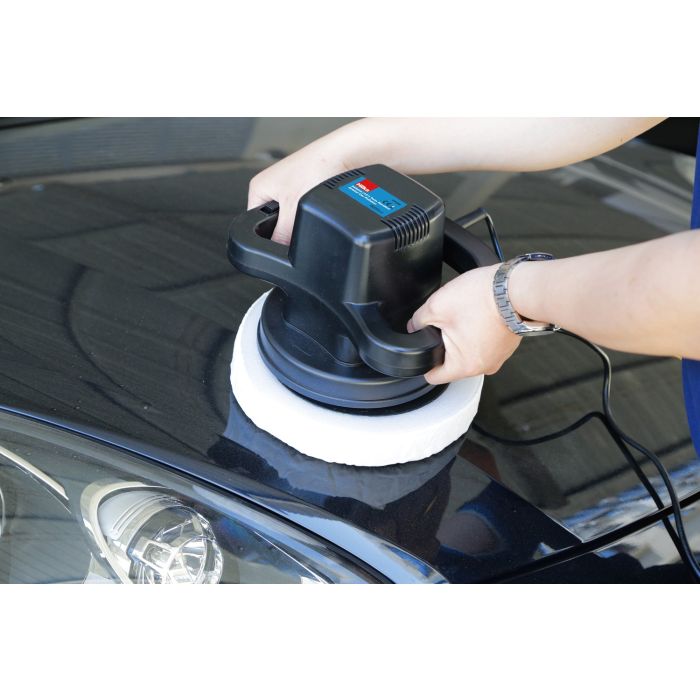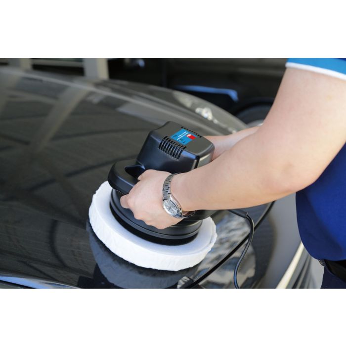Powerful 110 watt motor gives 3,200rpm for efficient and smooth polishing. Random orbital motion prevents swirling and burning marks on car bodywork. Fitted with a 245mm (10″) foam pad and supplied with a terry cloth and a synthetic wool bonnet. Comfortable dual-handle design for extended use with sturdy high impact ABS casing. Cable length 1.8m. Packed in colour box.